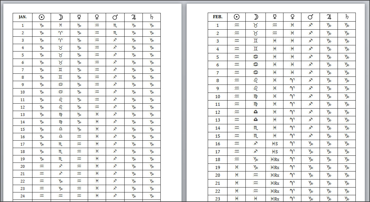 – adding the monthly ephemeris and monthly calendar before each months monthly daily page that way you do not have to flip back and forth; they will be right there at the beginning of each month.