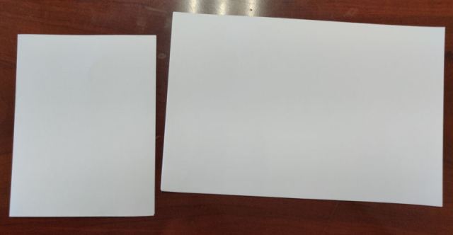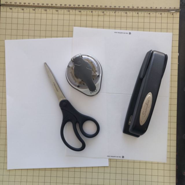 First, use scissors to cut each US Letter size paper in half, horizontally across while positioning the paper length-wise. See above for reference.