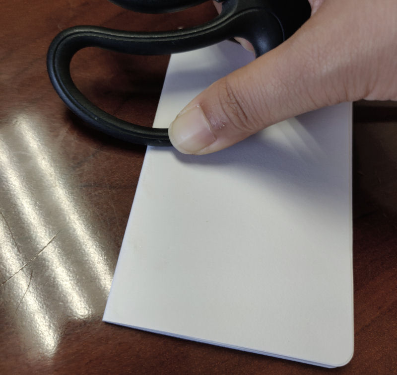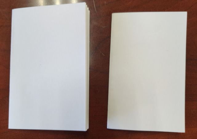Then, for each halved-cut piece of paper, fold it in half horizontally and cut into quarter sheets of paper. See above for reference. 3 sheets of US Letter size print paper will produce 12 quarter sheets (3 x 4 = 12).