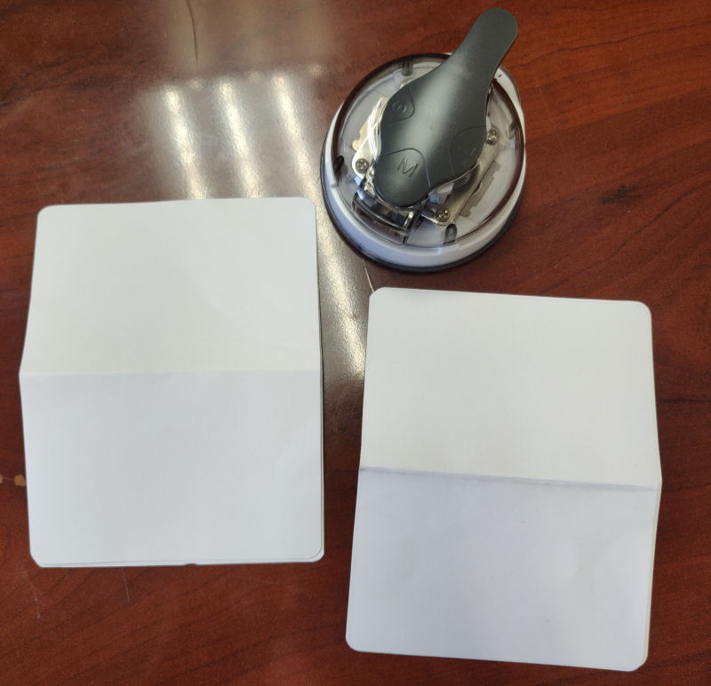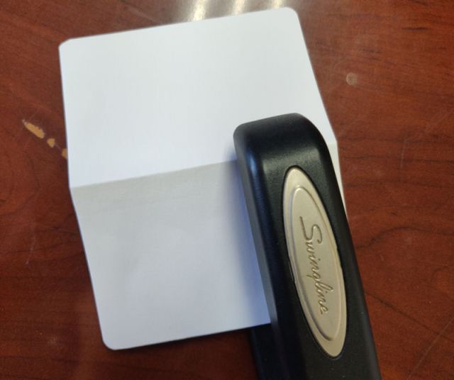 The next step is optional, but I would argue it’s mandatory, because the rounded corner booklets look so much better. =) Use a corner rounder and round the corners as shown above. For one booklet, I used the Medium rounder. For the other, I went with the Large. I prefer how the Large looks, but you do you.