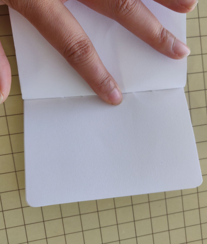 Then, page spread by page spread, gently press down and reinforce the crease. That way when you go to use the booklet, the pages flip easily.