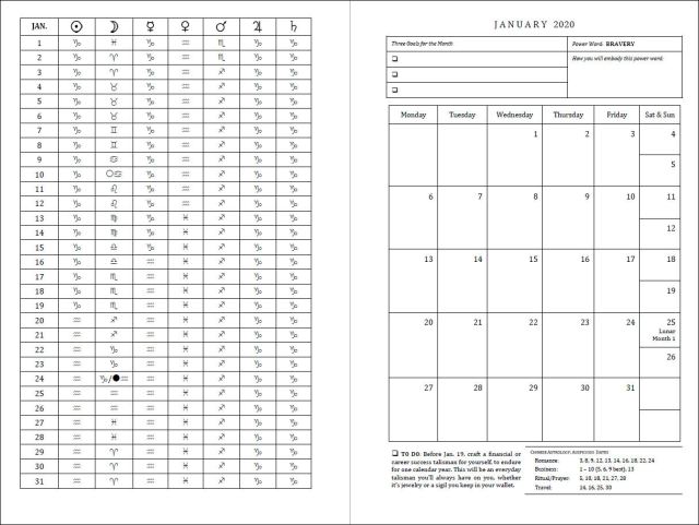 - Metaphysician’s Day Planner for 2020, with your birth chart (in Whole Signs) and 2020 solar returns chart in the front pages