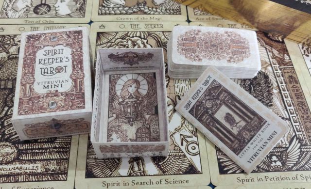 The SKT Vitruvian Mini do-it-yourself tarot printables is a $5 add-on to your Metaphysician’s Day Planner order. You’ll get printable files to assemble the two-piece deck box, 80-card deck, and even a little white book.