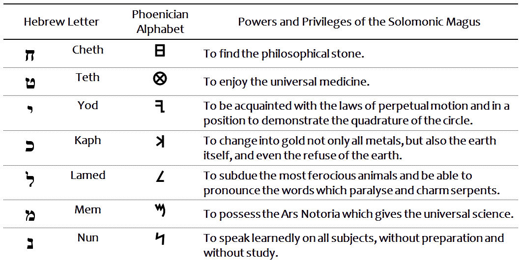 These are the powers and privileges of the man who holds in his right hand the Clavicles of Solomon, and in his left the branch of the blossoming almond: