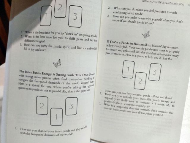 Now let’s get into your messages from the panda spirits. I’m paraphrasing directly from the guidebook The Book of Pandas and the little white book for the deck.