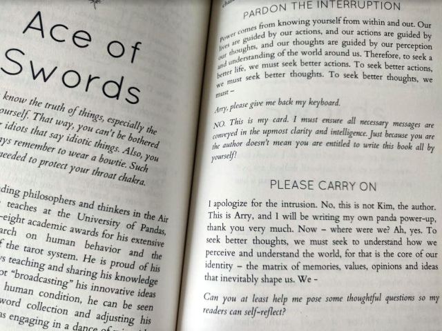 And if you picked the right-most card, you got the Ace of Swords. Your panda spirit guide is the impressive, formidable Arry, one of the leading philosophers and thinkers in the Air Panda Kingdom! He’s a professor over at the University of Pandas and has received over 78 academic awards for his research on human behavior.