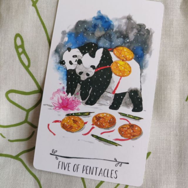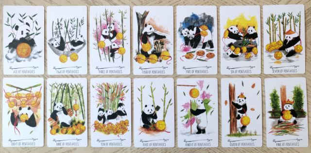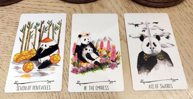 There’s Luke in the Ace of Pentacles, who is an excellent musician (flutist, to be exact). There’s Spartacus in the Four of Pentacles, who is a panda spirit that will help you with work productivity. The personality of these pandas really come to life and leap out of the cards at you.