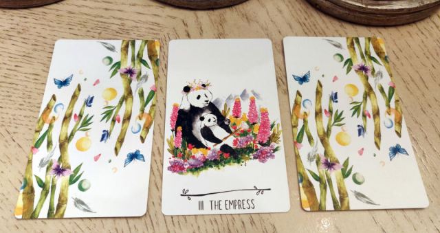 I adore this deck! I’m only said I didn’t back it on kickstarter and get the 3 additional cards, mine only came with the Dream Space card. My loss, because Kim did a fantastic job. I used it today for my full moon reading and those Pandas really gave me some straight talk.