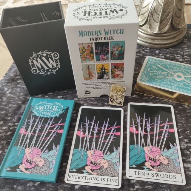 Beautiful deck & review thx4all pics!:) my only remark (beside it’s girls only!;) is I wish they go All The Way with sass by replacing All text with something like that iconic & my fav 10 of swords Ever!;D hopefully they will consider 2nd edt?;D eta; story behind 10 of swords she’s not doing social media but texting her friends!;D it’s how you reply when you had terrible night & wake up as 10 of swords & your friends are checking if you are still alive!;D lol it’s what every wreck i mean witch/aka modern kick ass girl know!xD