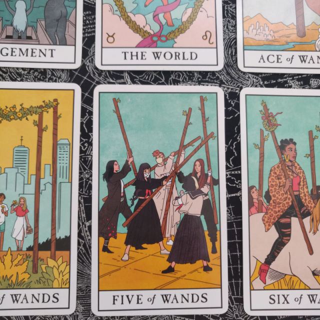 Oh, and the nod to naginata (though here, they’re wielding wands) in the Five of Wands in reference to the female samurai adds an international layer to the theme of female empowerment.