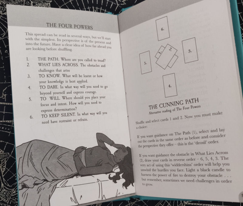 In addition to having all the card meanings at your fingertips, the little guidebook also features a generous portfolio of different card spreads to try, themed around modern witchcraft. A beginner armed with just this deck pack can try out any one of these spreads, then look up the card meanings and get a pretty meaningful reading, so I’m loving how this little book has been put together.