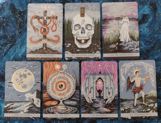 The Mystical Dream Tarot by Janet Piedilato is one of my go-to working decks out on my reading table at the moment, and it’s because I love how well it reads. I love its shamanistic complexion, and the nucleus of this deck is positively occult. This will not be a deck for the fairweather reader. The way this deck first asks of you to shed old canon and trust where it will lead you conveys a sense of initiation.