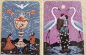 Ooh, okay so this is a fun one. Take a look at the above two cards from the Suit of Cups. Assuming you know a little bit of tarot, take a guess as to what those two cards are. No cheating. No scrolling down until you’ve confirmed your guesses.