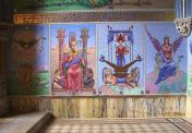 Above you’ll see the original art of The Hierophant and The Chariot in the chapel. The right-most panel features The Empress.