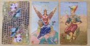 The tiles are made of enamel and gold mosaics with a style that is strongly Greco-Roman and Egyptian inspired. By the way, scroll back up to study the High Priestess, The Empress, and then take a look at the Justice card. Interesting how the Justice card here features the pillars typically associated with the Rider-Waite-Smith High Priestess card.