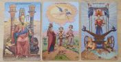 That is such a cool Hierophant card and when placed side by side with The Lovers and The Chariot, you can spot the pattern similarities across the three cards.