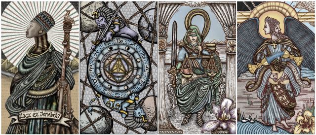 Wow, I don’t think I can find the right words to describe how stunning SKT 3.0 is. Compared with the elder two it fits in seamlessly. It’s absolutely perfect. I luckily have the Vitruvian Edition in the cards set as well as the ingenious tile set. I can hardly wait for the third edition to be released, Im anticipating it to be one of my (if not THE ONE) deck that will be my “go-to” deck of the year and possibly of all time. You did an amazing job with the detailing of the cards and I can see that it took you hours upon hours and even more hours to accomplish such fine and intricate detailing. It’s amazing what you can do with digital art however, you yourself have to imagine what you want to draw the pen and tablet are just the tool. So for all of those who think that digital art as opposed to hand drawn art is not sufficient or is lacking in creativity and talent is unfortunately very mistaken and in some cases it is actually the digital artwork that can cause an artist to get lost in needing to perfect even the most minute details that in hand drawing are not possible because you can’t zoom in with a regular pencil or pen and an ordinary piece of paper. So that being said, I can tell that you took that much care and focus into the finite detailing of each and every card and I commend you for not getting too carried away but also not lacking either. It’s a very balanced display and one that is very pleasing to the eye. I am literally waiting on pins and needles for this deck to be released!!!! I must have this deck in my collection, no doubt about it. Good luck on the rest of the deck I’m sure they will look just as mesmerizing and captivating as the other septenaries as it is very clear that you know exactly what you are doing and if you don’t well don’t think that because you very much do have a God given talent that I know many would love to have but simply just don’t have the knack for it. Honestly, I don’t even need to wish you luck because your art far supersedes beyond the far reaches of Luck…It is your destiny to share with the world how you envision the tarot and I think it’s beautiful that you want to share your wonderful creations with the rest of the world. I am truly blessed to own your work. Lastly, I appreciate all of the extra hours you have put into your website and all the goodies it has to offer and a lot even for free. I also am a big fan of your book Holistic Tarot as I have adopted a number of its teachings into my practice and I agree with you on many of your points of view on the tarot. It’s my tarot bible. I own four copies of it, hahaha. I just really appreciate all of your hard work and admire your passion and love for all things esoteric, magickal, and philosophical. If I was to ever have a mentor I would love for you to be my mentor. That would be an absolute honor.