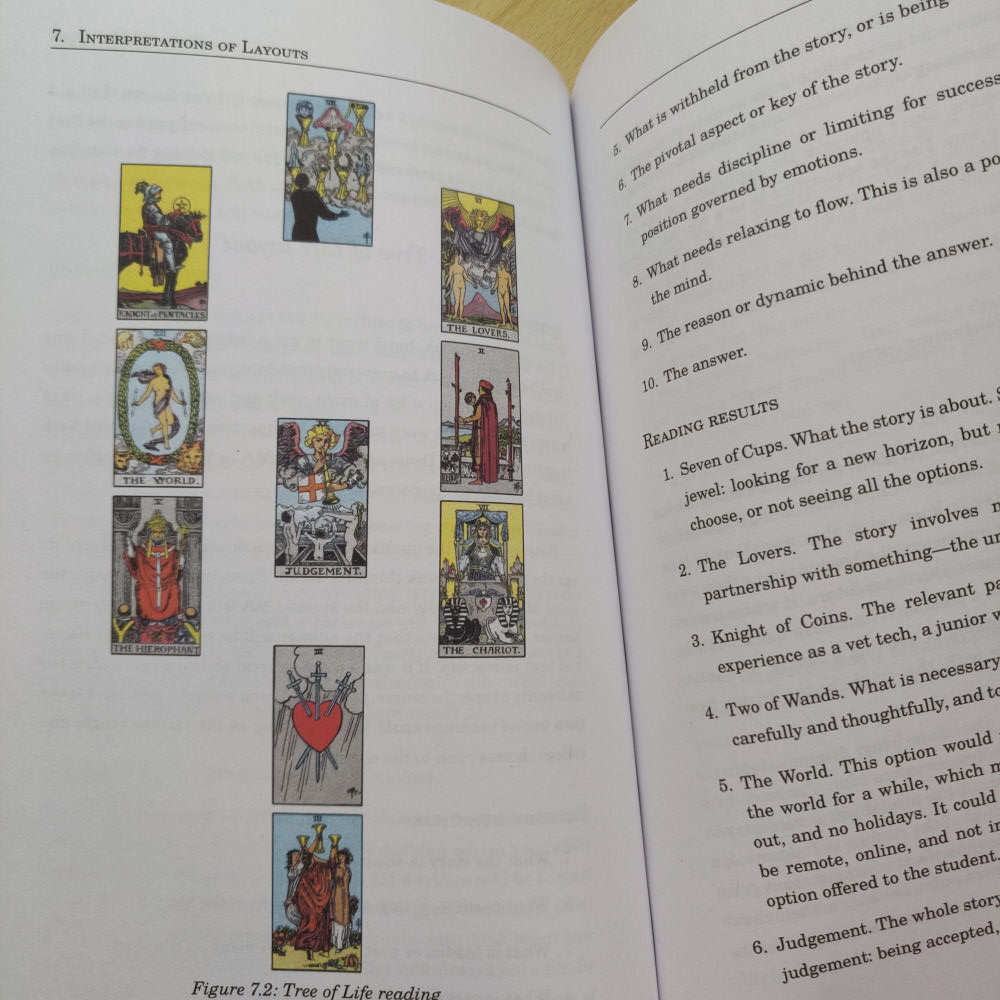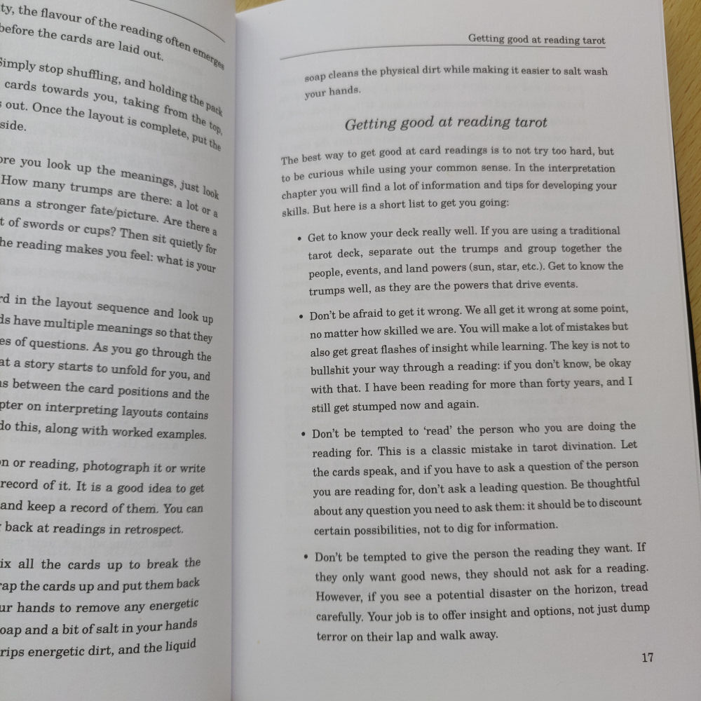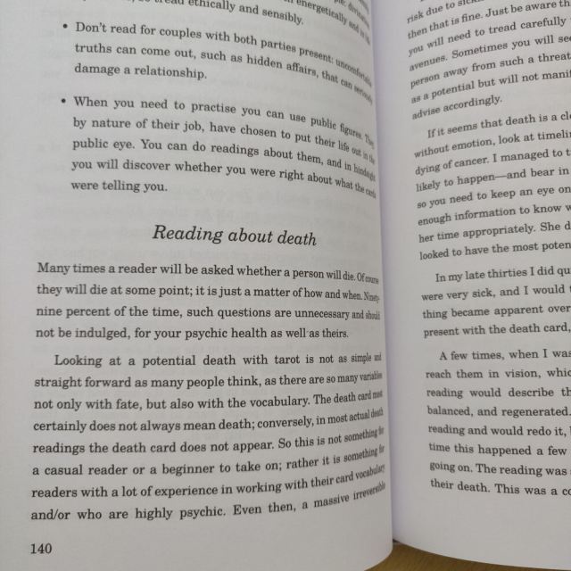 I appreciate how this text prepares its reader for a lifelong journey with the tarot, cautioning that learning how to interpret a tarot reading is a lot more complex than it may first appear, and will take years upon years to master.