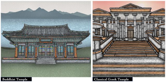 Only after I complete the background as a fully-formed landscape do I turn my attention to the foreground, the who and the what. For the most part, the foreground is the same as what it was in the earlier editions of SKT, with the addition of color. Of course, I do tweak details here and there, now that my technique has improved a bit since 2018.