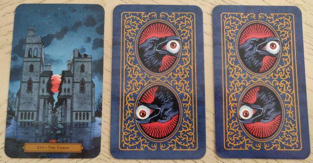 In terms of deck design, the publishers went with borderless and a high-gloss finish. High gloss doesn’t feel right juxtaposed with Poe. That plus the choice to go borderless gives this deck a very contemporary 21st century feel. The digital art style here also feels very modern.