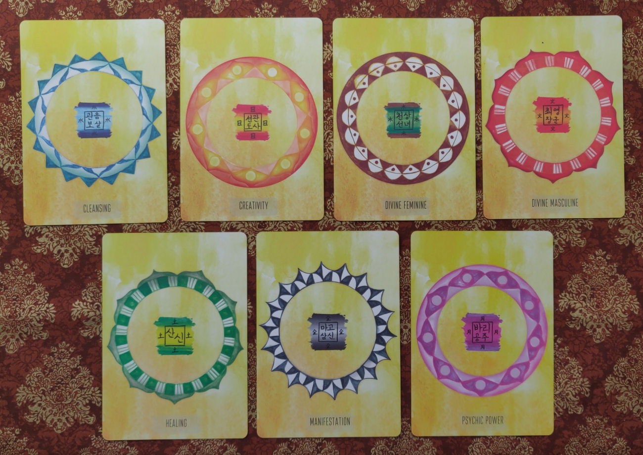 The deck comes with a guidebook, which is a good companion text to the deck, but I wish for even more, given the most likely audience for this deck. Let me try to explain that better. If this deck was intended only for those already familiar with Korean shamanism or even Taoist and Buddhist mysticism, then the guidebook is great as-is. However, if you’re going into this with next to no prior knowledge of the aforementioned, then you do leave wishing for more.