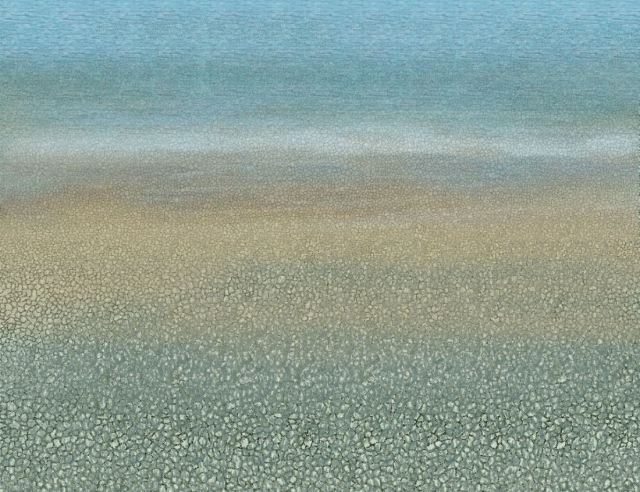 You’ll also notice a big difference in the sky pattern. To the left, I created a seamless blue-dotted tile pattern and then painted the sky with that blue-dotted tile pattern. The end result is unnaturally even, as you can see. So over to the right, I went in manually to add various lines and translucent-blue color layers to replicate a more natural, impressionistic hand-drawn effect.