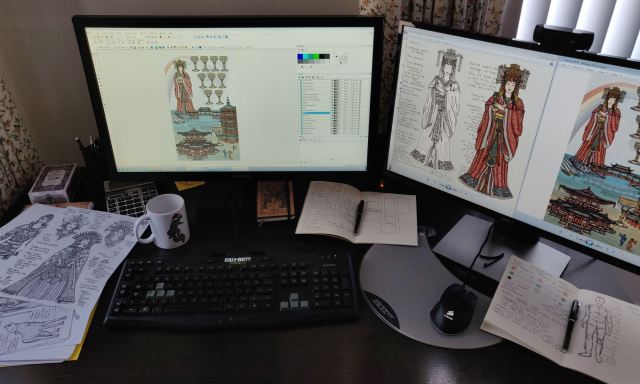 A few months in, I switched to working directly off my desktop computer, which is a two-monitor setup. Instead of using a digital stylus pen, I opted to work straight with my mouse.