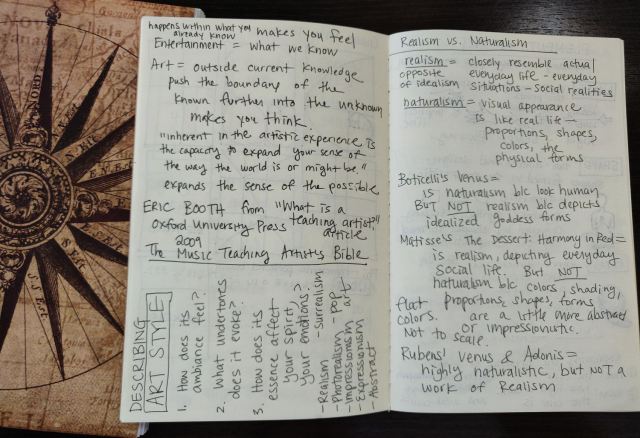 - Art History & Genres, or a very, very bare-bones version of this. This is studying realism vs. naturalism, for instance, the principles of portraits vs. landscapes and scenic art vs. religious art, Raphael’s technical approach to lighting, da Vinci’s precision in figure drawings, techniques in Impressionist and post-Impressionist art, etc.