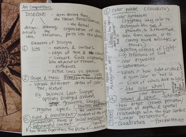 For art study, I set my own curriculum based on syllabuses I found online from top art schools. I broke down my studies into subjects: