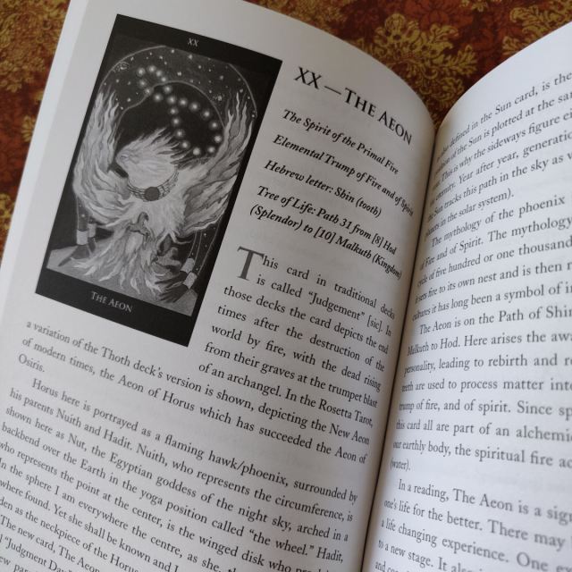 You’ll note that the colors here are keyed to the color scales ascribed by the Golden Dawn. Since the astrological roots at the essence of each card is so integral to the deck’s architecture, the guidebook includes several chapters on the intersection of tarot and astrology. If you’ve been wanting to deep-dive into working more productively at that intersection, this deck and its guidebook will help.