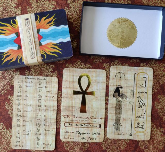 I absolutely LOVE my Rosetta Tarot! I have the earlier (non-Gold) Papyrus Edition in the Black Box. Picked it up a few years ago, along with the amazing Tabula Mundi Tarot. In fact, I bought them on the strength of your earlier review for the Tabula Mundi – so I have YOU to thank for turning me on to them. Thanks!