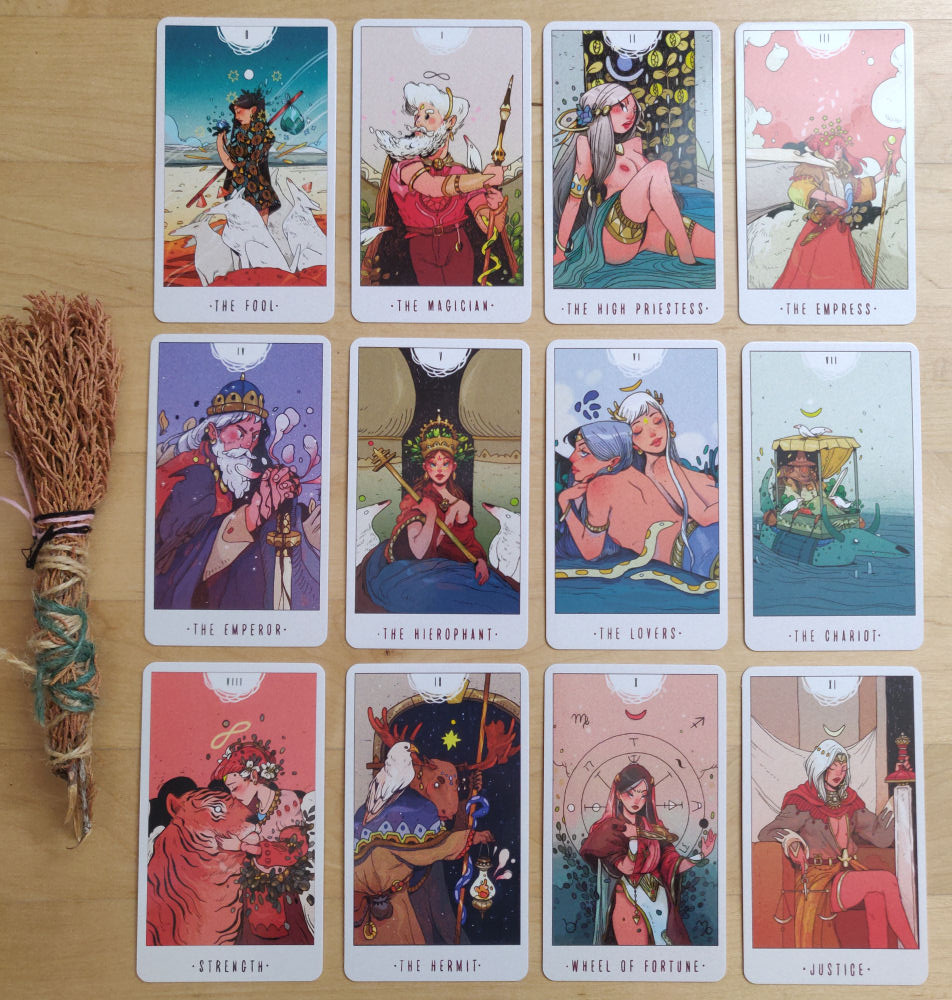 If you’re interested in this deck, I recommend that you watch a livestream chat between Alba and Darren Shill from Liminal 11.Β In that chat, Alba shares how she came up with the concept for this deck, which started with the Majors in 2018.