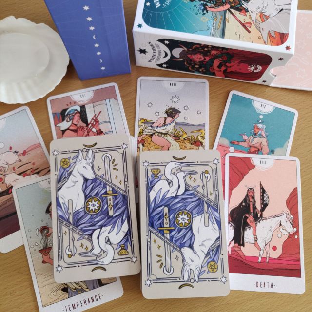 The White Numen Tarot illustrated by Alba Ballesta Gonzalez and published this year by Liminal 11 has been generating quite a buzz in the social-influencing sector of the tarot community. And it’s in no small part because of the animated and vivid illustration work. The scenes appeal to your intuition, giving this deck high readability and great as a beginner’s deck.