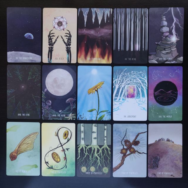 I did not find the cards difficult to read with at all, but the flow of inspiration and messages will come easier if you first ground and center yourself. If you’re not one who is all that deeply connected with nature, or tend to be a more extroverted, social personality, then The Spacious Tarot may give you a little trouble at first, but with that said, may be exactly the type of deck you need to bring you balance. Those who tend to be a little more introverted, who spend a lot of time alone with nature, are going to gravitate easily toward these cards.