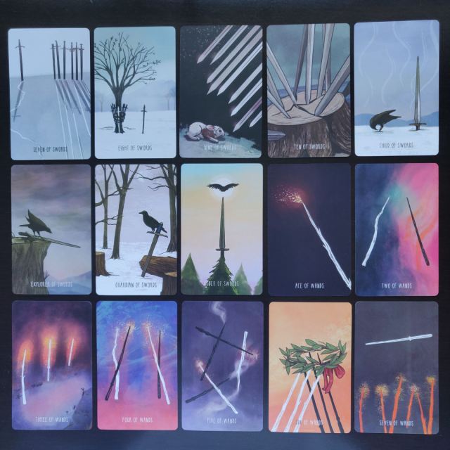 Nice one. I like the absence of people, the choice of colors and the overall calm atmosphere. However, unlike the other pip sets, the wands seem to be missing something to me. There is no actual scene/background/nature in most of them. That’s a pity.