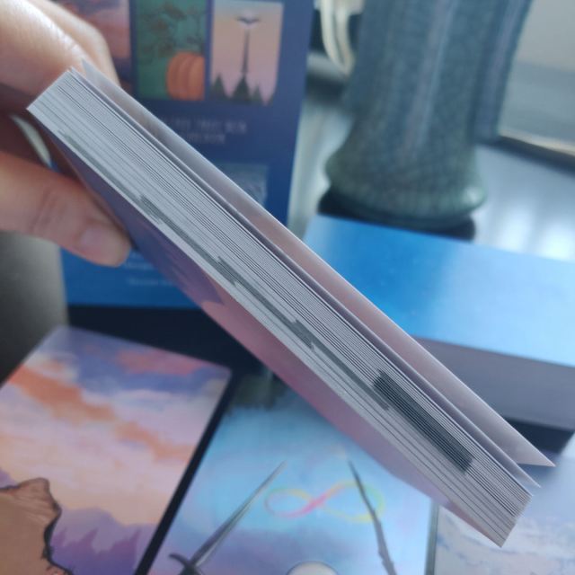 The deck pictured in this review is the 2020 Second Edition. In terms of production, really high quality. You’ve got this luxe, matte clamshell box with a satin ribbon insert. The cards are also matte, really sturdy, and a joy to shuffle with.