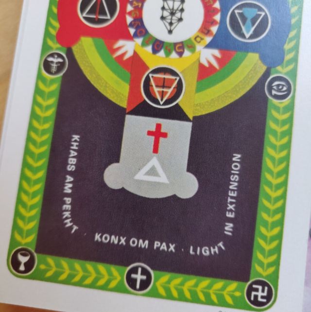 The card back design features the phrase “Konx Om Pax,” attributed to Mathers, which means “Light in Extension.” Golden Dawn members believed this was a secret, coded phrase uttered during one of the initiation rituals of the Eleusinian Mysteries. “Khabs am Pekht,” as inscribed on the card back, is the Egyptian equivalent to the phrase.