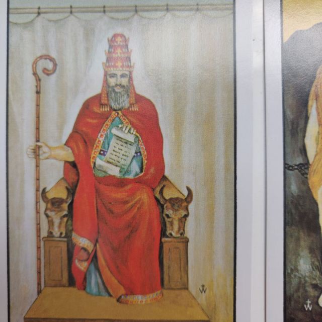 To fully appreciate the depths of thought this deck involves, you need to read the companion guidebook, Introduction to the Golden Dawn Tarot, or at least I definitely did. It’s in the guidebook that you learn that the Magician is an aspect of Hermes or Tahuti, the High Priestess is an aspect of the goddess Hathor. The Empress is an aspect of Isis, but also of Venus. The triple goddess crown represents the Egyptian trilogy, Isis, Hathor, and Nephthys, crescent, full moon, and gibbous moon. The Emperor is “Ho Nike, the Conqueror . . . the apotheosis of Mars, whether in love or in war.”