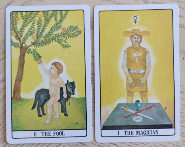 Under the Golden Dawn system of correspondences, influenced by Eliphas Levi’s Magical Ritual of the Sanctum Regnum, Key 1: The Magician is assigned to the Hebrew letter Aleph, while The Fool card is, as Wang puts it, “placed in an improbable position between Judgement and The Universe.”