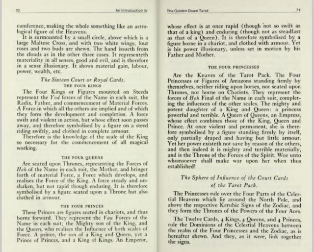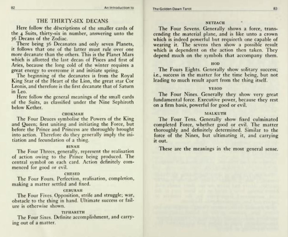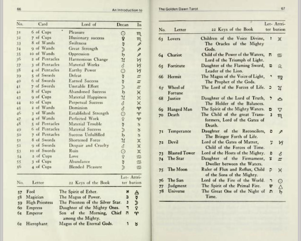 The Golden Dawn Tarot “must be viewed as a pedagogical tool, intended to lead to a deep-rooted understanding of the human condition.” Echoing what Waite has written about the cards, the tarot is a book of symbols and of seed ideas.