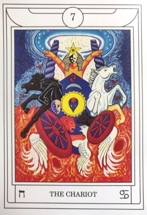 Studying the card imagery alongside reading its entry in the guidebook is how you’re going to get the most out of this deck. It’s how you’re going to learn that Key 7: The Chariot is your key to the Vision of the Merkabah, the Vision of Ezekiel. Sphinxes embedded in the tarot imagery are Guardians of the Mysteries, and where in the deck you see one you see potential, promising access to your Higher Self. I find the Ciceros’ depiction of the Chariot card particularly compelling.