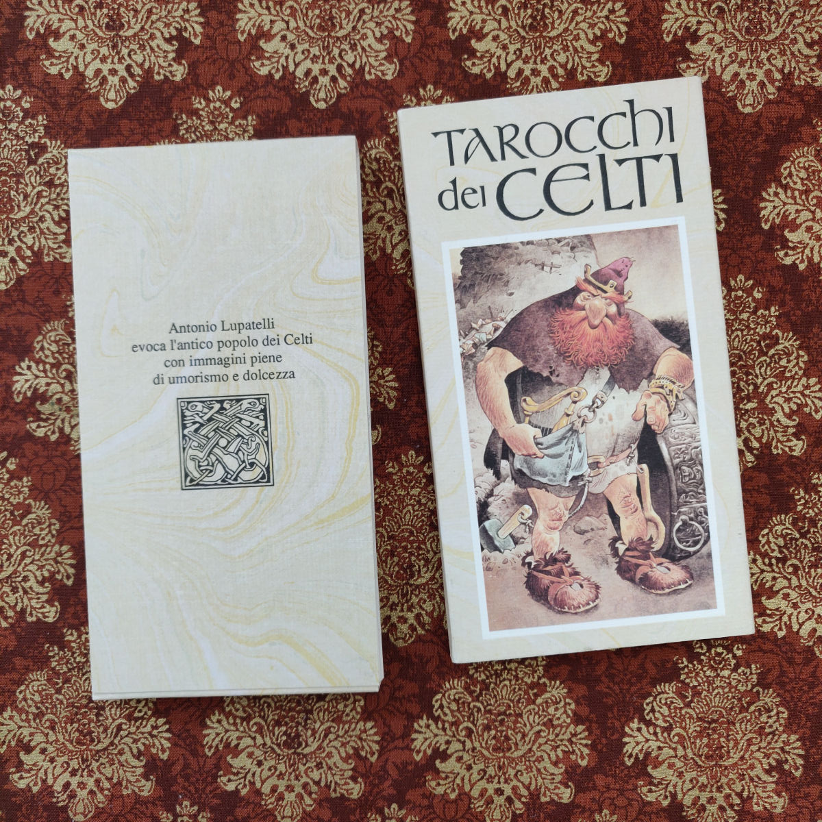 Tarocchi dei Celti, or Tarot of the Celts, is a Majors only deck published in Italian. The artwork is done by Italian illustrator Antonio Lupatelli (1930 – 2018), “evoking the ancient people of the Celts, with illustrations that are full of humor and sweetness” (thank you, Google Translate).