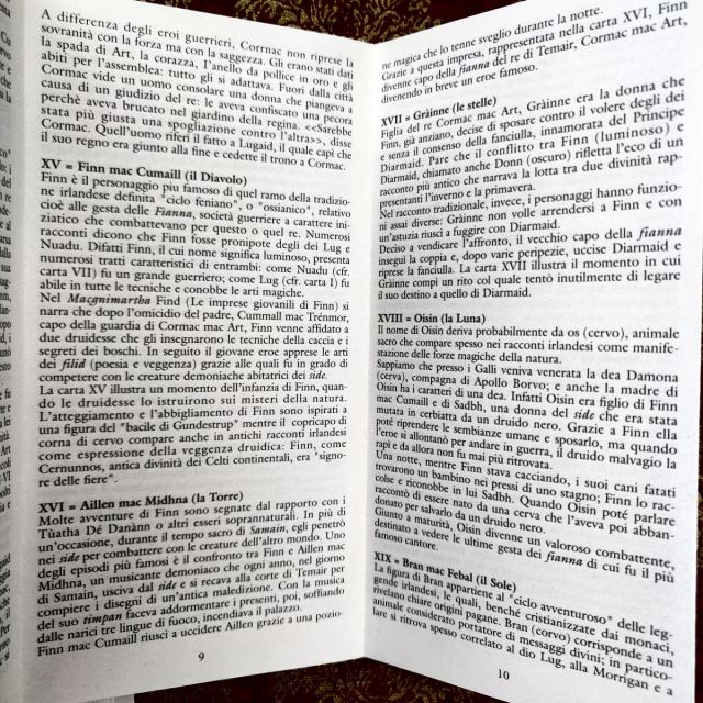 Laughs nervously. Okay, I’m wholly unqualified to be reviewing this deck. I have no idea what any of the key titles say, and when I tried typing the words into Google Translate, for instance with “Fintan mac Bochra,” the application tells me this phrase doesn’t exist in Italian, and in Arabic, allegedly it means “Venta is not good.” Not only is there the language barrier, there’s also the cultural barrier– I’m not all that familiar with Celtic mythology.