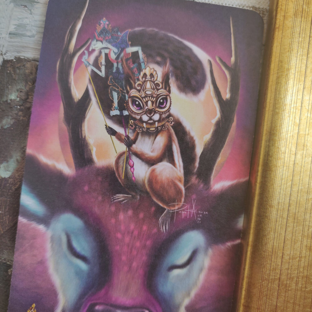 Mythical creatures and divinities of Southeast Asia come alive in the landscapes and scenes these illustrations depict. If you love colorful picture books of fairytales and you enjoy interactions with cultures far east of home, you’ll love flipping through the pages of this tarot book. If you’re of Asian ancestry, this deck will have you beaming with pride and love and also an emotional catharsis of feeling seen.