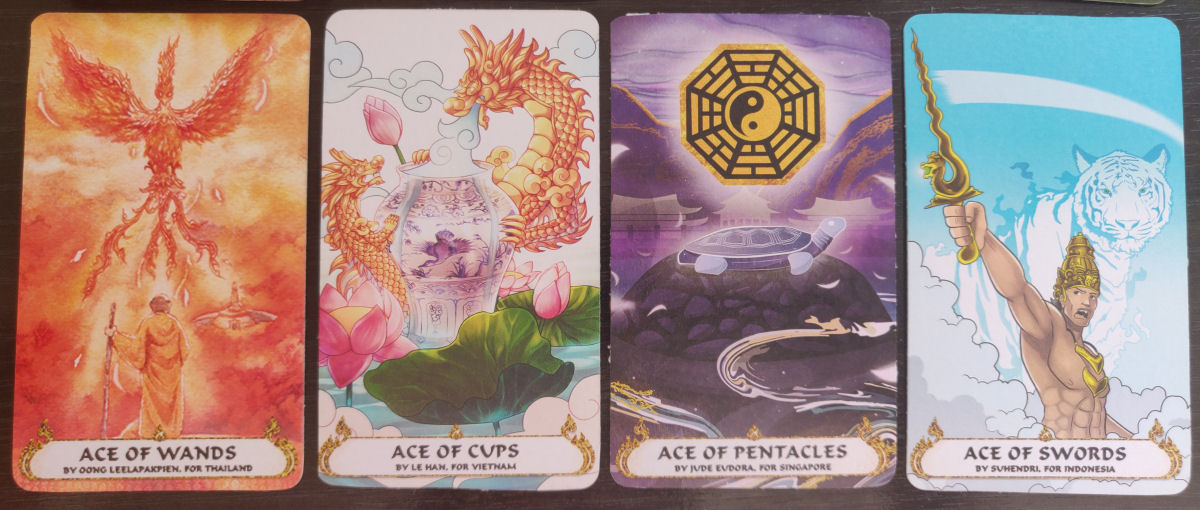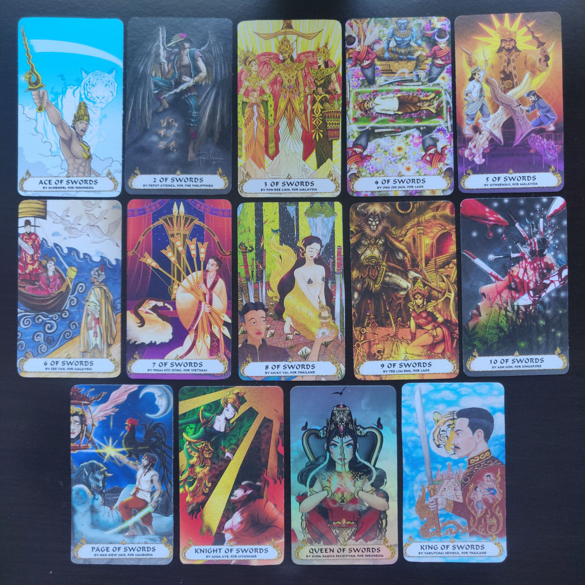 I was gifted an early prototype of the Southeast Asian Myths and Stories (SEAMS) Tarot, which was hand-cut by the Chairman of Singapore’s Tarot & Cartomancy Association himself, and now one of my most prized possessions in my tarot deck collection.