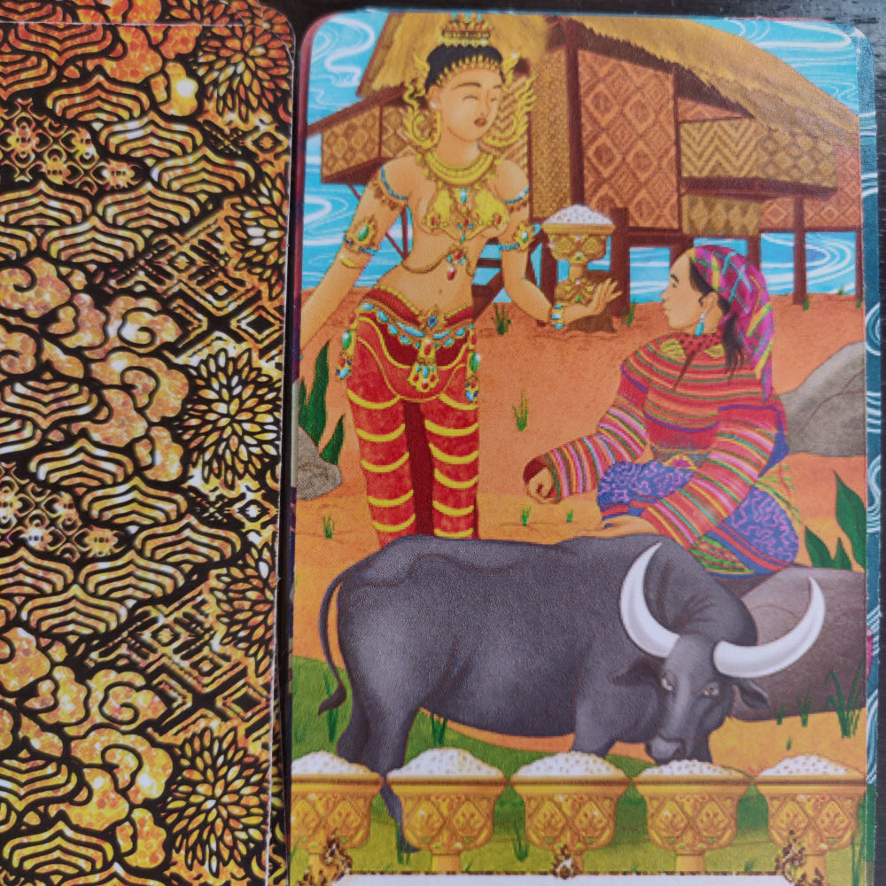 What’s also great about this deck is you don’t have to read or study anything to learn so much from this deck of cards– just by experiencing the artwork, noting the patterns, and details, the clothing, and geographic landscapes, it’s like a form of astral sightseeing through another region of our world. You’ll learn so much about Southeast Asia just by experiencing the art.