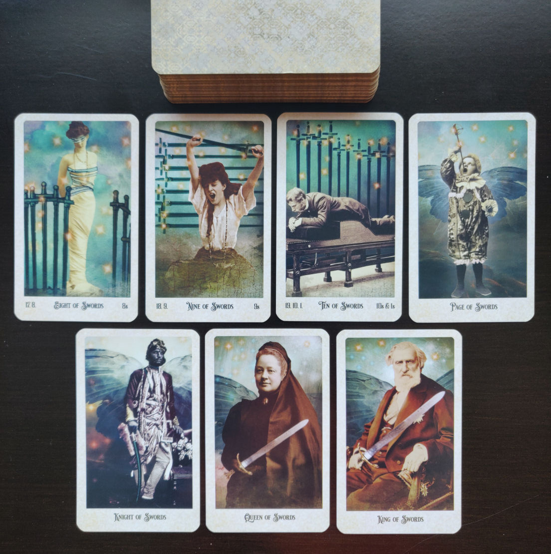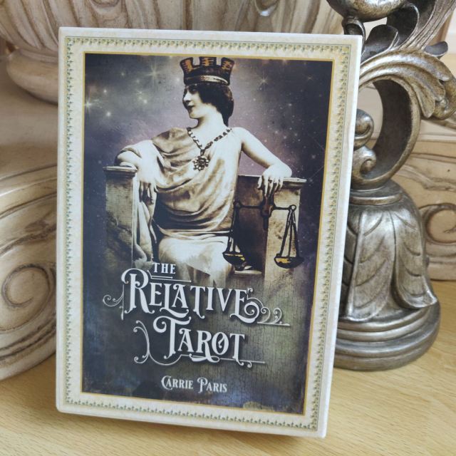 The Relative Tarot, created by the inimitable Carrie Paris and published by Weiser Books, is not just a masterfully done photo-collage mixed media deck that stitches vintage photography with details from the Rider-Waite-Smith deck, but it’s also a powerful analytical and psychoanalytical tool. I feel like both Jung and Freud would give their stamp of approval!