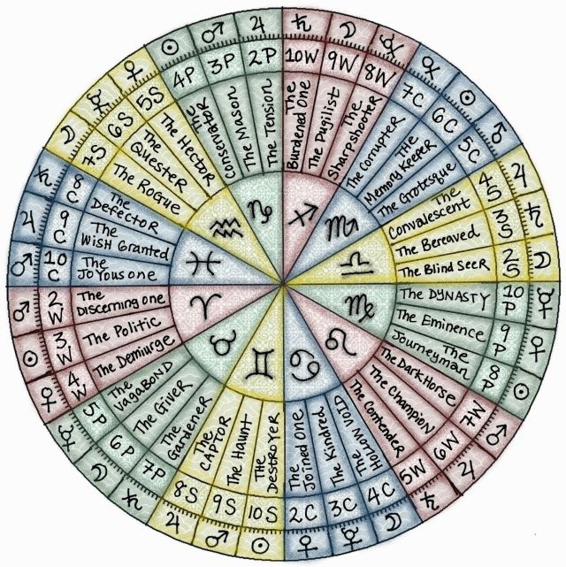 | Pisces | Key 18: The Necromancer (Moon) – Deeply intuitive; empathic; can feel and even mirror other people’s emotional values–easily affected by their environments, and yet by that same token, are remarkable chameleons. Could be more prone to anxiety. One born more attuned to the underworld and otherworld. Their default setting is to be conscientious. Gift of the Magi: Necromancy; mediumship. Political prowess. |
