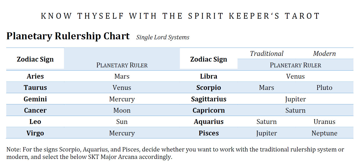 Use the below reference table to fill in the “Planetary Ruler” column in the “Inner Mysteries” part of the worksheet: