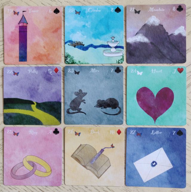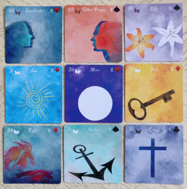 The Butterfly Lenormand comes in two sizes, and I really love both. I was trying to find a link to where you can purchase these lovely little decks, but nothing turned up. So you may need to DM the creator directly.